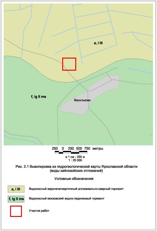 Выкопировка из гидрогеологической карты Ярославской области (воды кайнозойских отложений). Масштаб 1:25 000……………………………………………..