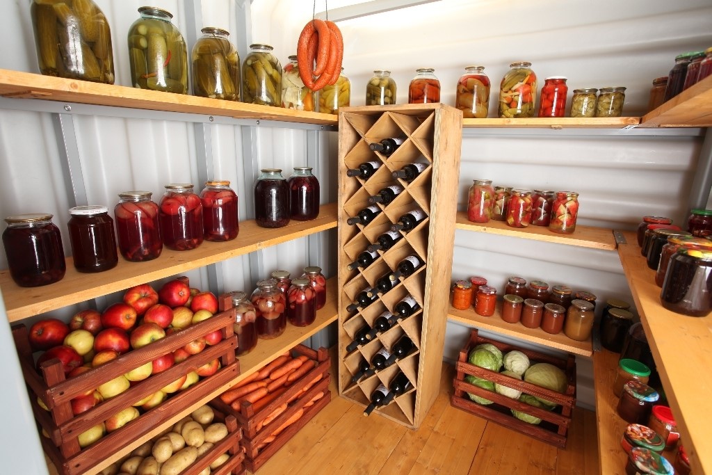 В таком погребе нет необходимости дополнительно обрабатывать стены и полок противогрибковыми составами. Гладкие поверхности можно легко протереть или помыть дезинфицирующим составом.