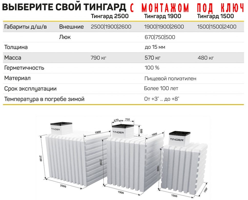 АСТИКОВЫЕ ПОГРЕБА TINGARD 1500, 1900, 2500