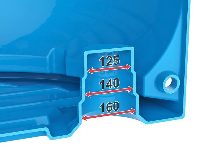 В конструкции основания, верхней части и крышки предусмотрены ребра жёсткости для придания повышенной прочности.